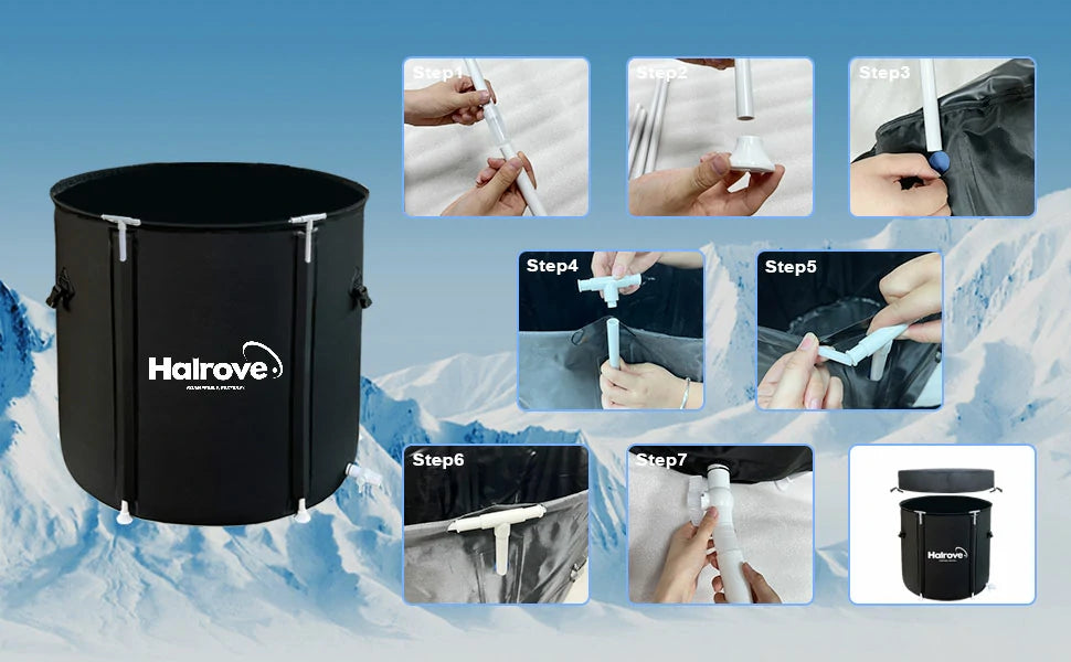 The Halrove portable ice bath tub ensures you can assemble it in minutes. With support bars, bracket tubes, a faucet, and an instruction manual included, setting up for recovery or relaxation has never been easier. Designed for portability, this lightweight tub comes with a non-woven carrying bag, making it perfect for home or on-the-go use. Achieve cold therapy whenever and wherever needed!